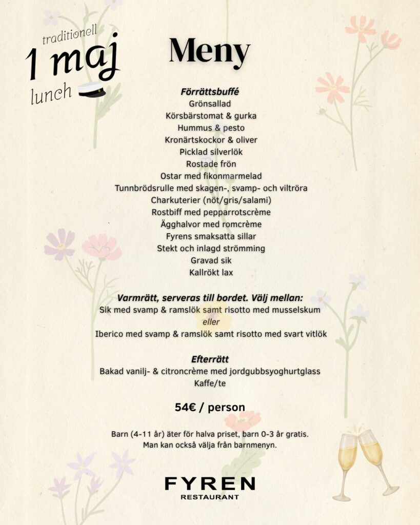 Du har väl inte glömt att boka bord till Fyrens traditionella första maj-lunch?